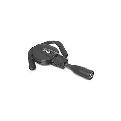 Shines a bright white light. Attaches to the ear. Ideal for reading at night or in bed. This lightweight LED light has no wires to fumble with, & is a relief from awkward book lights that must be balanced on the page or on a nearby desk. The light-emitting diode (LED) shines wherever you look, for complete hands-free convenience when reading in bed or on a plane.