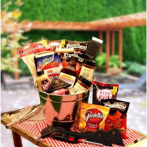 This terrific barbeque gift basket features everything needed to create an excellent barbeque - specialty sauces, grill rubs and marinades, snack food go-togethers and even grilling utensils!